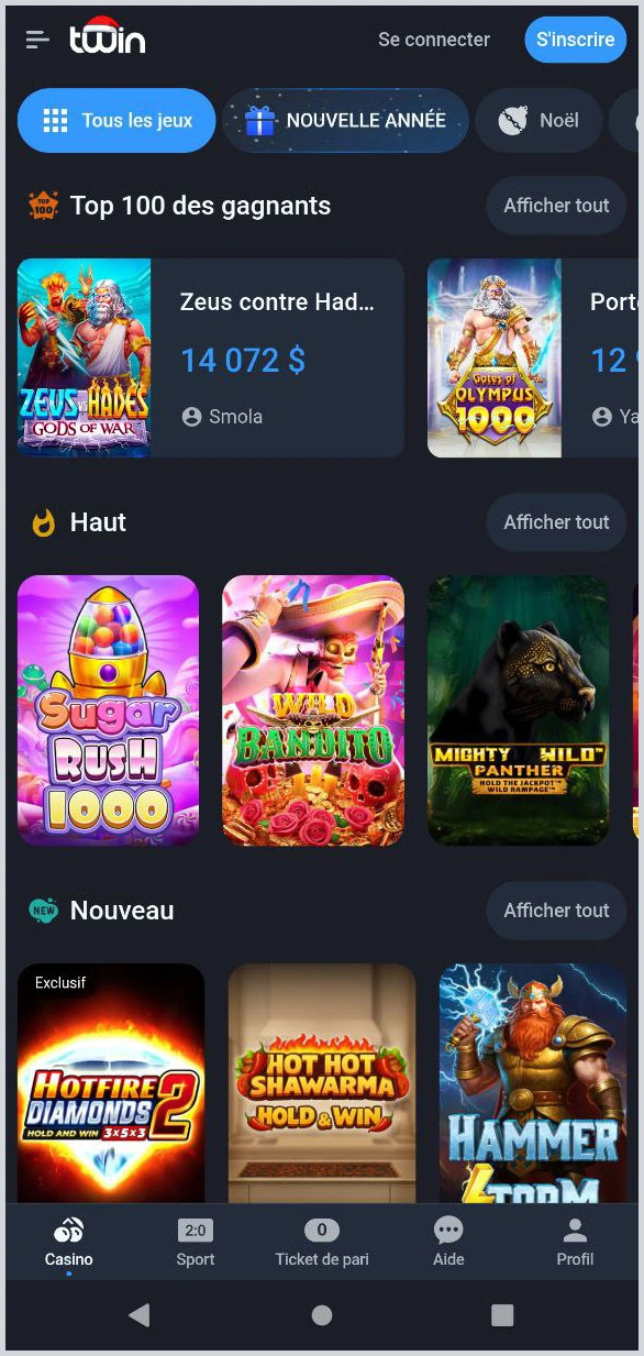 Quand tu débarques sur Twin, tu as l’impression qu’il s’y passe un tas de trucs en même temps : paris sportifs, casino, jeux en direct, virtuels… un vrai petit marché.